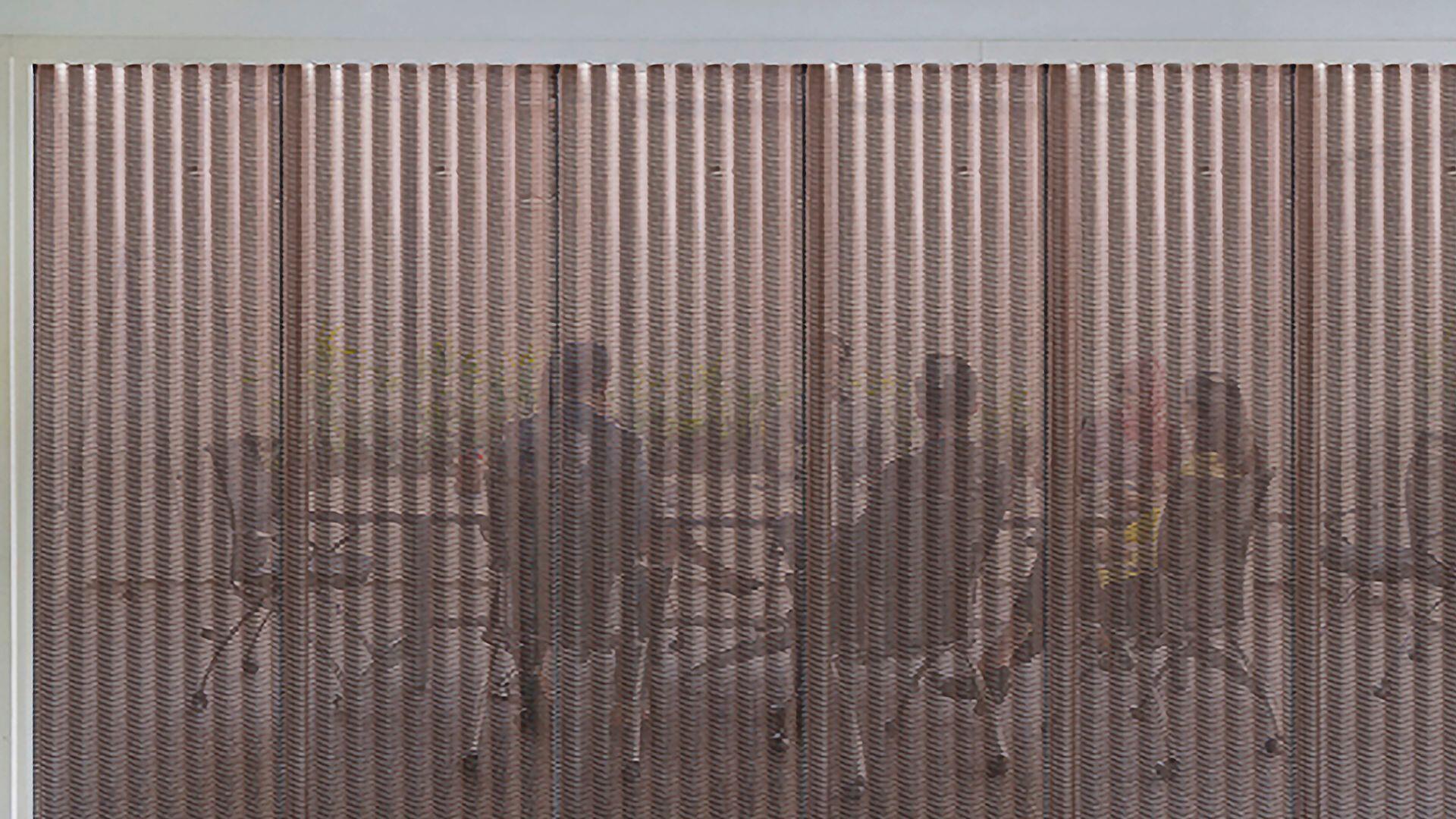 Mediante la superposición de estructura, color y material, esta técnica de diseño permite que la malla expandida presente diversos efectos visuales según el ángulo y la iluminación.